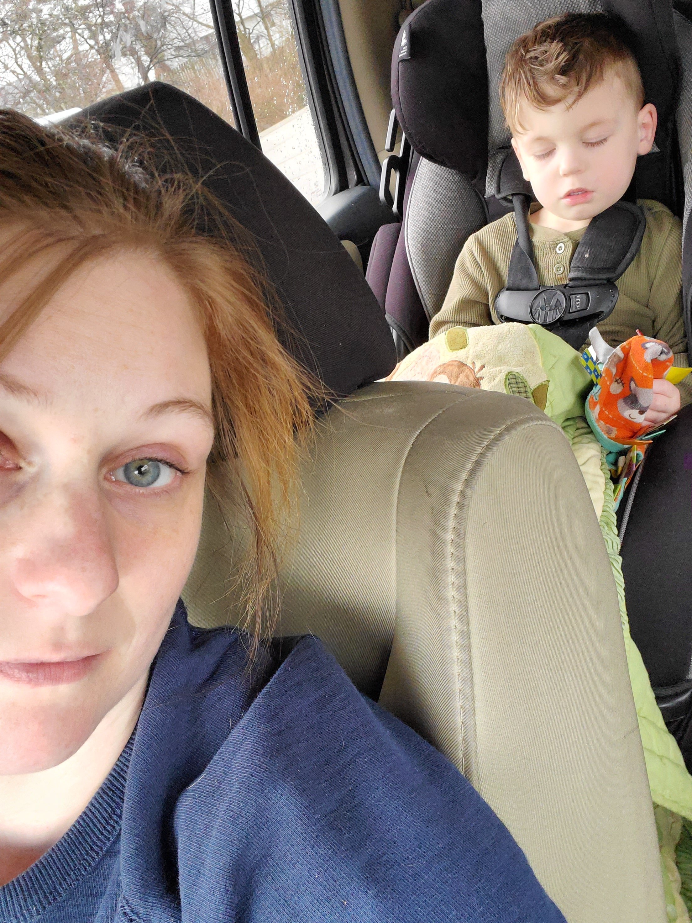 It’s quiet in here. My car says it’s 38 degrees outside and I have my heat set to 80. I hear little nasal snores from the back seat, but other than that, it’s just me, the heater, and my giant blanket. I feel peace.