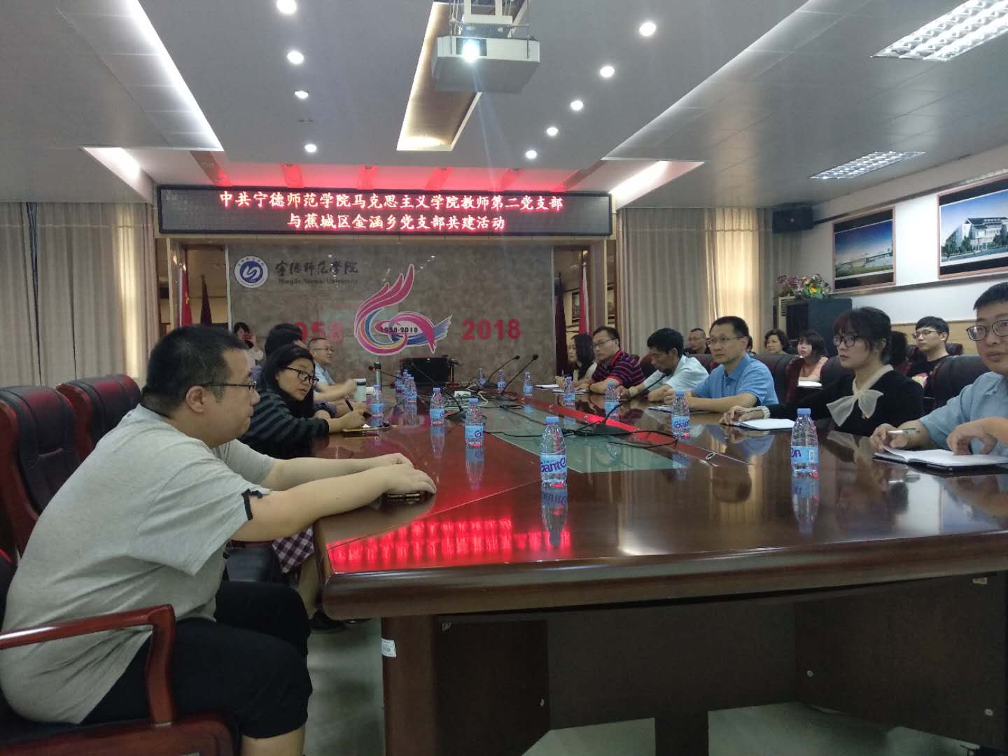 在即将迎来中国共产党成立98周年之际,为进一步加强党性修养,也为进一步加强“党建+服务地方发展”,2019年6月26日,beats365亚洲版教师第二党支部与蕉城区金涵畲族乡机关党支部在公司举办了第二场共建活动。马院教师二党支部全体成员、金涵畲族乡机关党支部近30名党员共同参加了本次活动。