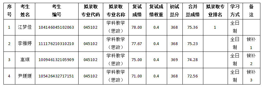 2026年硕士研究生招生第四批调剂复试结果及拟录取名单公示