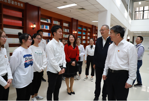 十九届五中全会精神宣讲会结束后杨国豪来到了beats365亚洲版与师生互动交流,勉励师生共同为中华民族伟大复兴贡献自己的智慧和力量。杨国豪表示大家要志存高远、脚踏实地,学好知识,打好基础,增长才干,将来为中华民族伟大复兴贡献自己的智慧和力量。现在同学们正处于人生积累阶段,需要像海绵汲水一样汲取知识,要惜时如金、孜孜不倦,好好学习、早日成才,为社会作出贡献,把中华优秀传统文化传播到五湖四海。