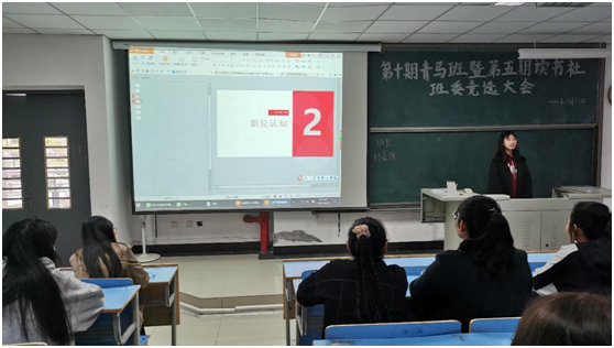 校团委副书记林志斌提出,青马班读书社学员要充分发挥自己的领导力、凝聚力和号召力,积极参与班委竞选,做一名坚定的马克思主义的信仰者和传播者,并激励学员们深刻理解时代赋予青年的使命与责任,努力成长为“模范表率、堪当重任”的青年马克思主义者。