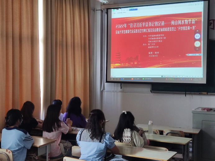 为持续深入开展“矢志不渝跟党走、携手奋进新时代”政治交接主题教育,迎接中国共产党第二十次全国代表大会的胜利召开。9月19日上午,公司“青马工程”、读书社学员在求知楼B202开展“追寻习近平总书记的足迹——闽山闽水物华新” 全省老员工暑期社会实践活动成果汇报交流会暨全省高校师生同上“开学思政第一课”直播,让学员们更加深刻地认识伟大领袖的人民情怀。