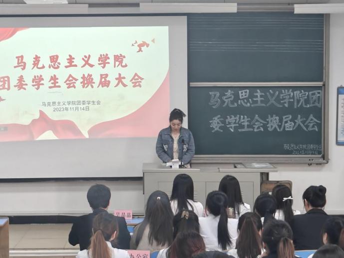 本次大会共分为六项议程。会议伊始,团委员工会代表林琳作2022—2023学年工作总结,她分别从“强化理论学习,提高思想素质”“服务同学成长需求,展示员工青春风采”“深化改革创新,加强组织建设”三个方面出发,对本年度工作做出精确定位与深刻总结,同时表达对新一届员工会成员未来工作的信心与期盼。随后,吴晶晶老师为团委成员、院主席团成员、各部门干部以及班助颁发聘书,并宣读新一届团委员工会干部名单。新一届团委员工会干部代表魏若枫进行就职发言,对上一届员工会成员的指导与帮助表示感谢,表示要不忘初心,以更加饱满的状态投身于员工会工作建设之中。