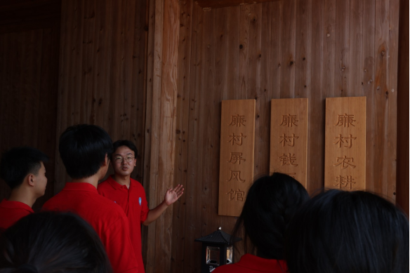 在指导老师詹有贵、钟涵冕的带领下,实践队员们深入廉村基地,沿着古官道,追溯历史的脚步,探访了明月祠、陈氏宗祠、五进士厝等饱含廉洁文化底蕴的历史人文古迹。在参观过程中,大家或驻足凝望,或低声探讨,不仅深入了解了唐朝“开闽第一进士”薛令之以及“勤廉二十四人物”的清廉事迹,也汲取了历史人物的廉洁务实、淡泊宁静的精神力量。一步一景观,一步一故事,一步一历史,队员们瞻仰“廉”历史,陶冶“廉”文化,感悟“廉”内涵,增强了筑牢抵制腐败、防范变异的思想防线,提升了坚定拒绝污浊、追求廉洁自律的信念。