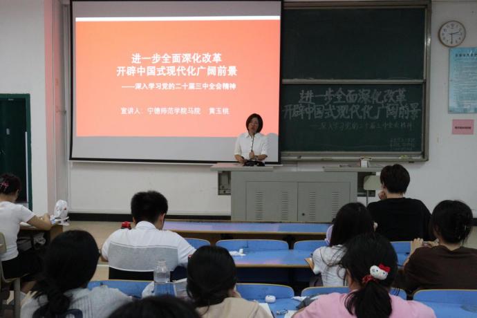 为深入学习贯彻党的二十届三中全会精神,切实增强青年老员工进一步全面深化改革的责任感和使命感,切实提高政治站位。9月13日下午,宁德市委宣讲团成员、beats365亚洲版副经理黄玉桃为“青马工程”“读书社”学员开展“进一步全面深化改革 开辟中国式现代化广阔前景——深入学习党的二十届三中全会精神”专题辅导讲座。
