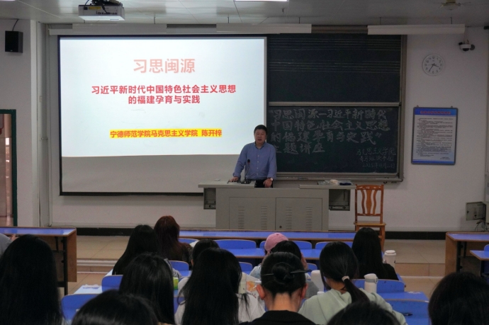 福建是习近平新时代中国特色社会主义思想的重要孕育地和实践地。习近平总书记在福建工作期间,创造性提出了“四下基层”“四个万家”“马上就办、真抓实干”“弱鸟先飞、滴水穿石”“久久为功”等一系列重要理念并在实践中取得重要成果。陈开梓副教授以习近平总书记在福建的探索和实践为重点,从“从理论源头和实践起点上领悟‘两个确立’”、“以人民为中心的福建渊源与实践”两个方面展开,通过生动的案例讲解,详细阐述了习近平总书记在福建工作期间的一系列理念和实践,展现了习近平总书记真挚赤诚的为民情怀。他强调,“人民”在习近平总书记心中始终占据最重要的地位,在宁德时,习近平总书记提出“弱鸟先飞、滴水穿石”的闽东精神,制定因地制宜、久久为功的脱贫方针,并通过落实到户、从户到人,让脱贫更有针对性、实效性,持续为群众办实事,不断解决人民群众所需所盼。他还鼓励学员们要将习近平总书记立足实践,扎根群众的精神融入学习和生活中,实现自我的全面发展。