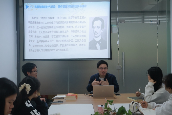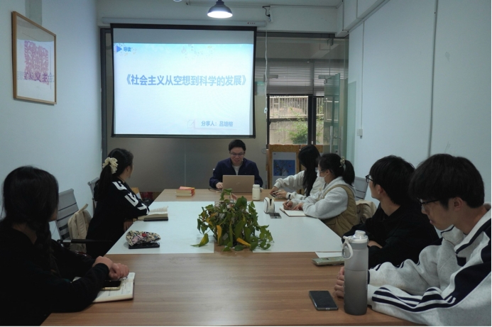 马克思主义学王鑫同学分享:“参与本次读书沙龙分享会,让我对《社会主义从空想到科学的发展》的理论逻辑有了更深刻的体悟。书中清晰阐释了社会主义从空想走向科学的历史必然。通过分析空想社会主义、工人阶级状况,使我们能够更加深刻地理解唯物史观与剩余价值学说的创立过程,打破了我对理论的表层认知。随后,老师以当代案例,让我们更加领悟这篇文章跨越百年的思想伟力。身为思政专业师范生这让我意识到,思想政治教育工作必须以科学理论为根基,只有深刻把握科学社会主义的立场、观点和方法,才能向员工传递正确的理想信念。”