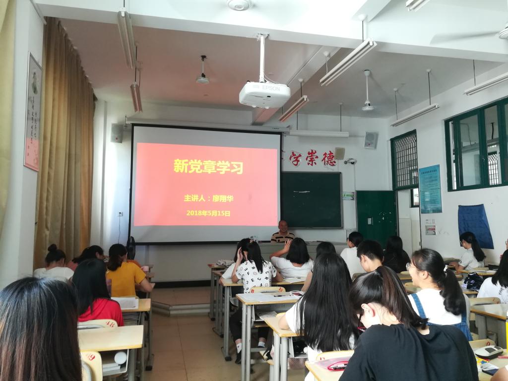 廖翔华书记向支部全体成员阐述了党的发展历程、性质、宗旨,为大家梳理新党章有何新变化。廖书记指出:党章是根据我国社会主要矛盾的转化作出相应修改,并将习近平新时代中国特色社会主义思想、中国特色社会主义文化、全面从严治党等写入党章。同时,他还强调,学习新党章要知行合一,以高度的责任感和政治敏锐性把党章学深学透。