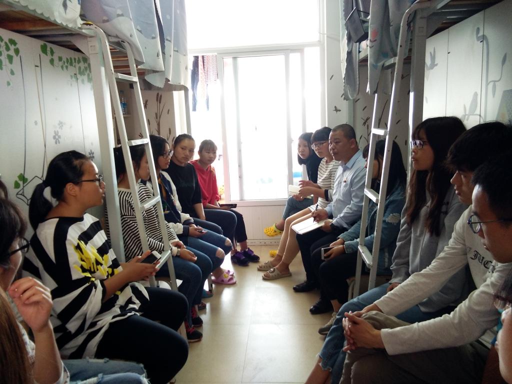 在3S601宿舍,廖翔华副书记与员工代表们亲切交谈,询问了同学们在学习、生活、参与校园活动的情况,针对同学们提出的一些疑惑进行了耐心解答,并允诺最大限度地帮助同学们解决学习与生活上的困难。走访宿舍过程中,廖翔华书记提醒同学们要提高自我保护意识、安全防范及防骗意识,还将第一届省级文明校园考评工作向同学们进行了说明,要求同学们都为省级文明校园评估贡献一份力量。