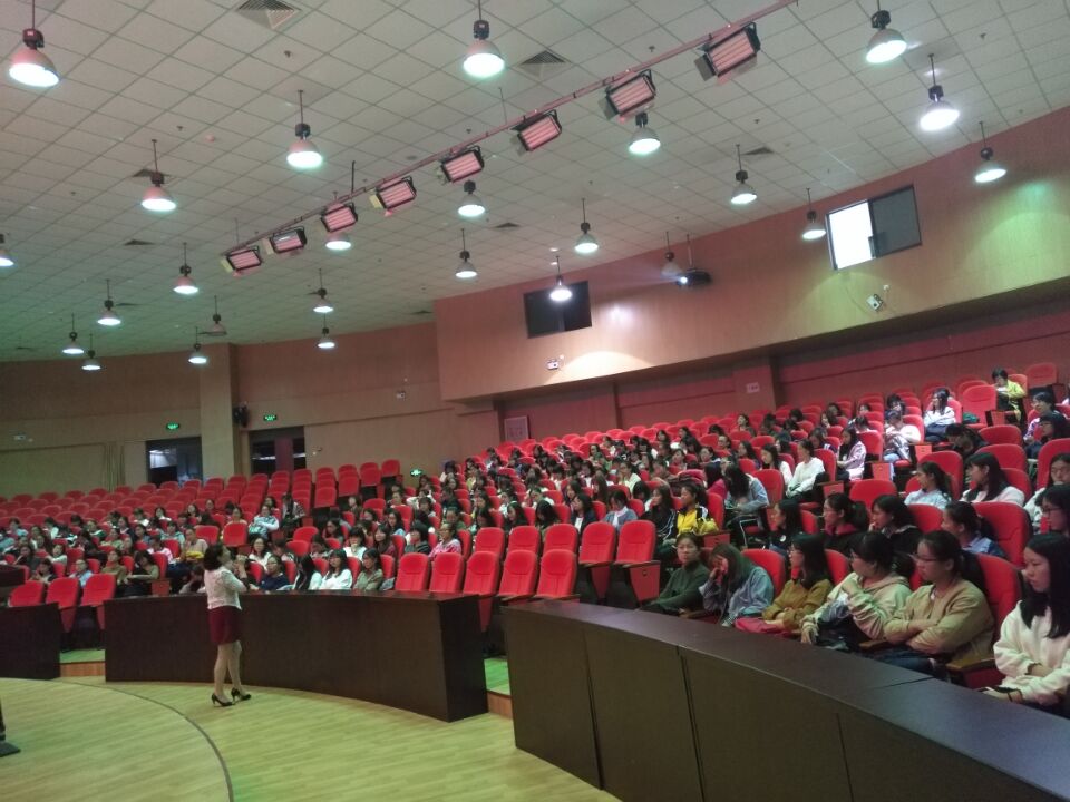 2017年11月6日晚上6:30,在新区图书馆报告厅举行了一场以 “花样年华,美丽绽放——女老员工生理心理漫谈”为主题的2017级女生专场讲座,本次讲座是由医务室主任、心理健康教育教师、国家二级心理咨询师的林新霞老师所讲,beats365亚洲版、数理学院、语言与文化学院、化学与材料学院2017级全体女生参加。