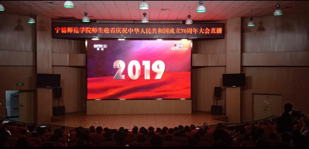 早九时许,图书馆报告厅人头攒动。同学们饱含着激情、期待,守候在直播收看点。北京时间10时整,56门礼炮70响轰鸣,迎接三军仪仗队。天安门广场升旗仪式,义勇军进行曲奏响,荧幕前全体师生起立,齐唱国歌。习近平总书记在大会发表重要讲话。