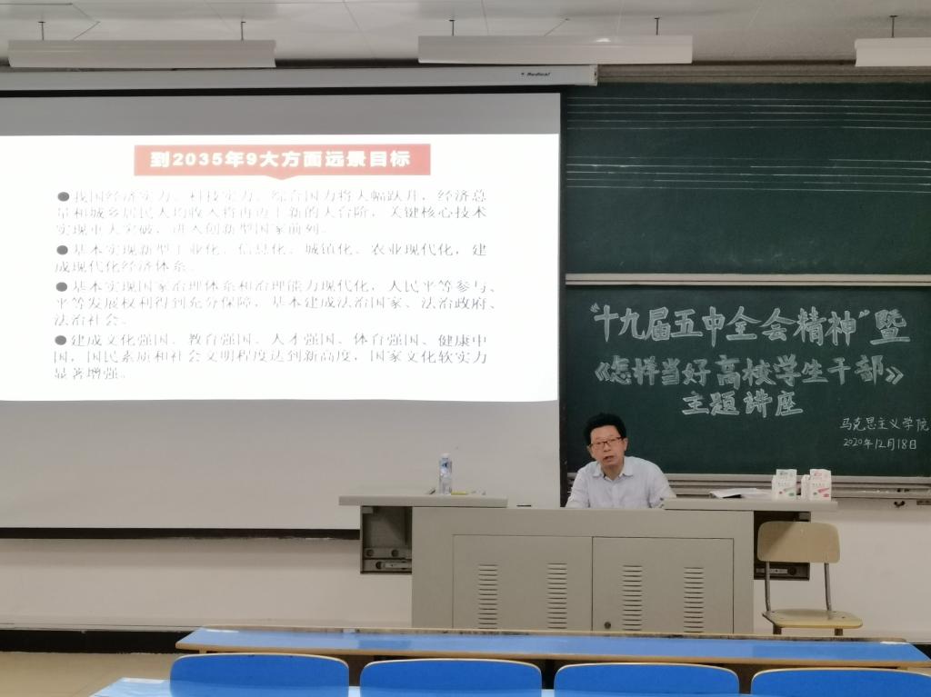 为深入学习贯彻党的十九届五中全会精神,加强员工干部队伍建设,12月18日,beats365亚洲版在AB201召开由公司党委书记吴立志做“党的十九届五中全会精神”宣讲会,以及《怎样当好高校员工干部》主题讲座。beats365亚洲版部分年级员工及团委、员工会干部认真聆听了此次宣讲和讲座。