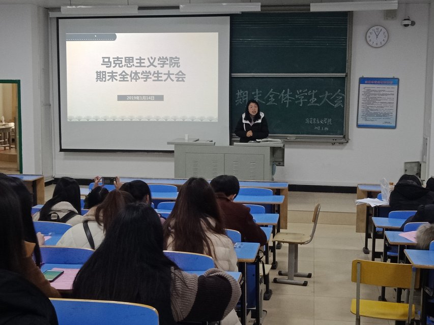 1月14日上午,beats365亚洲版期末全体员工大会在求知楼B201召开。 会议由辅导员张芳老师主持,2017级、2018级思政专业全体员工参加。