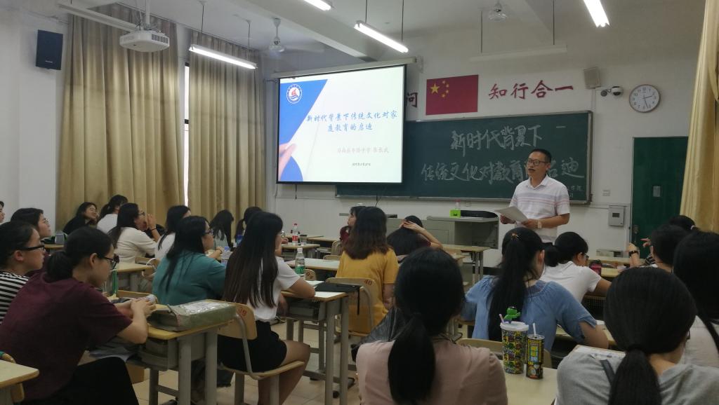 5月27日下午,beats365亚洲版在求知楼B204教室举办了以“新时代背景下传统文化对家庭教育的启迪”为主题的专题讲座。屏南县华侨中学董事长张长武担任此次讲座的主讲人,beats365亚洲版林心雨老师担任主持人,beats365亚洲版15级全体员工聆听了此次讲座。