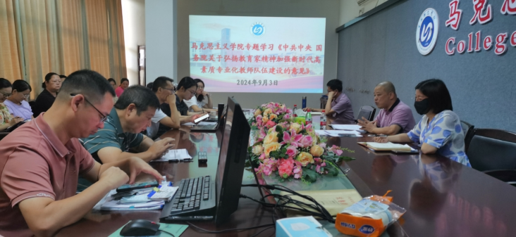 2024年9月10日下午,公司组织全体教师召开以“大力弘扬教育家精神,加快建设教育强国”专题学习研讨活动。全体教师在学习党的二十届三中全会精神、习近平关于教育的重要论述、《关于弘扬教育家精神加强新时代高素质专业化教师队伍建设的意见》等的基础上,深入学习习近平总书记在全国教育大会上的重要讲话精神,进一步提升了立德树人的使命感与责任感,激发了大家努力做“大先生”、坚守岗位作出新贡献的热情。