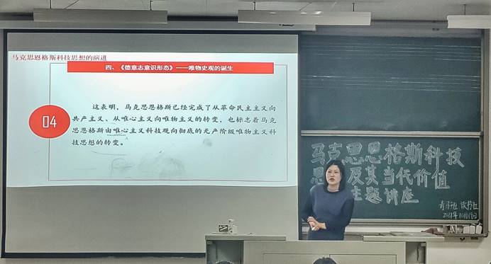 马克思主义理论和马克思恩格斯科技思想,是社会主义创新型国家和社会主义现代化强国建设的理论支撑和指导思想。此次讲座主要围绕马克思恩格斯科技思想的基本观点、演进、主要内容、中国化及其当代价值等方面进行展开。李慧娟副教授深入浅出地讲解马克思恩格斯从初创期、发展期、成熟期科技思想的发展变化,在历史实践中不断深化认识和研究其发展规律。讲座过程中,李慧娟副教授提到恩格斯和马克思对人类思想所做出的伟大贡献,他们共同创立了马克思主义,为全世界无产阶级和劳动人民争取自身彻底解放提供了科学的理论指导和行动指南。习近平总书记指出:“马克思主义是我们立党立国的根本指导思想。背离或放弃马克思主义,我们党就会失去灵魂、迷失方向。”马克思恩格斯科学思想观的中国化不断推进,习近平新时代中国特色社会主义思想是马克思主义中国化的最新成果,是坚持马克思恩格斯科技思想,充分展现马克思恩格斯的理论贡献对中国发展的影响。