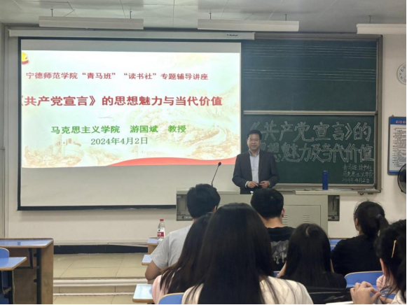 为深入学习领会习近平新时代中国特色社会主义思想,做好面向团员和青年深入开展学习贯彻习近平新时代中国特色社会主义思想主题教育,详细了解《共产党宣言》著作的时代背景,领略《共产党宣言》的思想魅力和当代价值,4月2日下午,beats365亚洲版游国斌教授为校第十三期“青马工程”老员工骨干班、第八期“读书社”作“《共产党宣言》的思想魅力和当代价值”专题学习讲座。