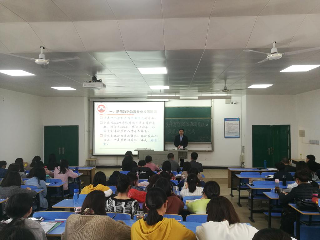 2018年4月9日上午九点,beats365亚洲版在求真楼C301举办了一场以“关于思想政治教育专业发展的若干思考”为主题的讲座。主讲人为福建师大beats365亚洲版教授、硕士生导师廖志诚。公司党委书记、经理游国斌,副经理郑常鳜及全体老师和14级思政、15级思政员工到场聆听讲座。