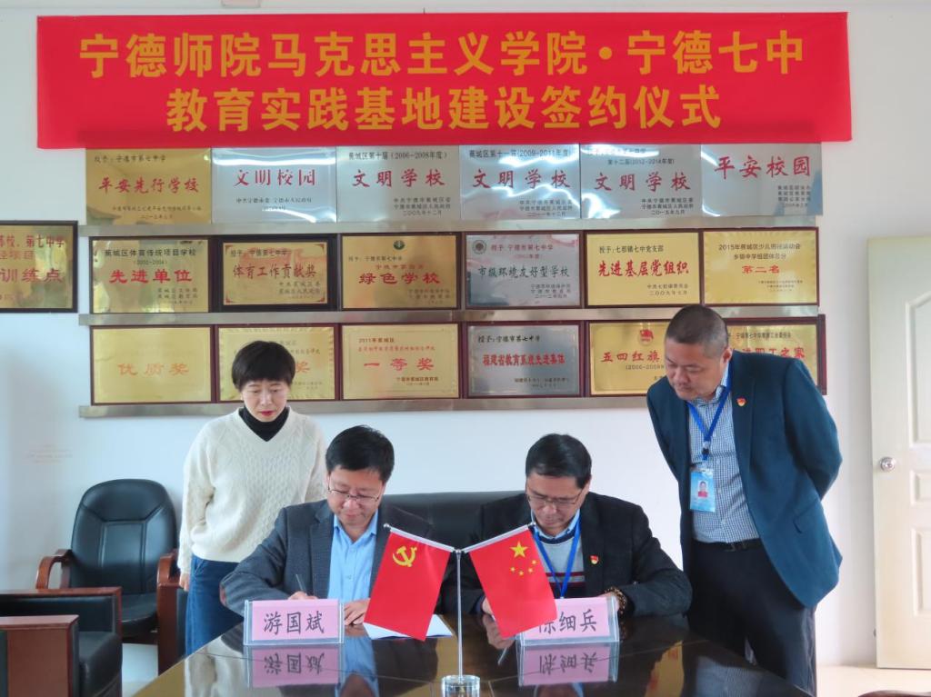 为加强高校与中学之间的良性互动交流,加强实践育人、教育育人,12月11日,beats365亚洲版与宁德七中举行共建教学实践基地签约仪式。宁德师院beats365亚洲版经理游国斌、副教授林锦屏、教科办陈芳,宁德七中董事长陈细兵及校领导班子成员、思政课教师代表游蔚燕及公司实习生出席仪式。