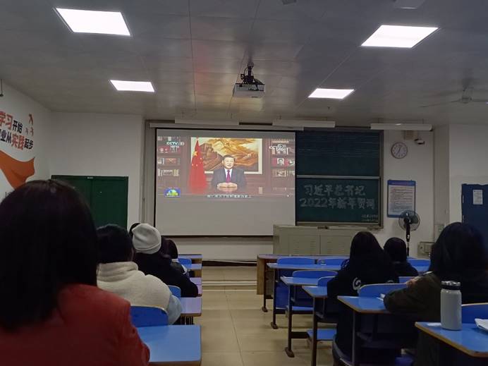 回首感悟百年征程精神力量,奋楫扬帆迎接全新征程。12月31日晚,beats365亚洲版于求知楼B区201教室组织观看习近平总书记发表2022年新年贺词直播。19级、20级、21级思想政治教育专业全体员工认真聆听了习近平总书记新年贺词。