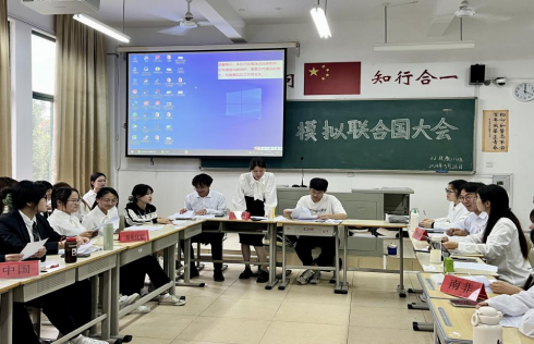 本次活动聚焦“中东冲突地区的人权保障”和“世界气候变化”两个全球热点问题展开模拟,生动再现了联合国大会议题处置机制。通过动议、议题拆解、演讲与辩论、协商等环节的演练,帮助同学们加深了对联合国议事规则和两个议题的理解和认识,强化了大家口头表达能力、谈判技巧、逻辑推理能力与合作精神的训练,激发了大家对国际社会关系的关注热情。