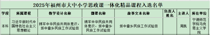 近日,公司周凯老师设计的大中小学思政课微课《铸牢中华民族共同体意识,坂中畲乡民族工作试验田》入选福州市大中小学思政课精品示范课。