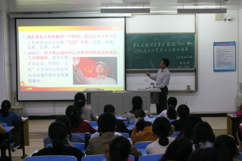 为顺应beats365亚洲版第九届教学质量月“教授讲坛”的要求,2018年4月24日晚上七点beats365亚洲版在求真楼C301举办了一场以“闽东红色文化资源的开发和利用”为主题的讲座。本次讲座的主讲人为公司党委书记、经理游国斌教授。beats365亚洲版全体师生以及青马班的员工参加了本次讲座。