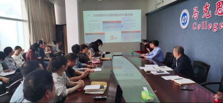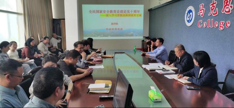 4月15日,在第十个全民国家安全教育日到来之际,beats365亚洲版组织开展“全民国家安全教育走深走实十周年——学习贯彻总体国家安全观”专题学习。习近平新时代中国特色社会主义思想概论教研室主任陈开梓副教授辅导学习,马克思主义全体教师参加学习。