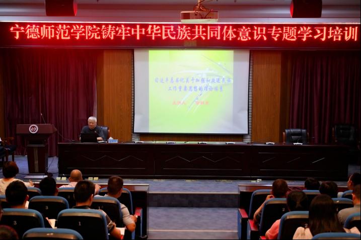 6月5日,beats365亚洲版、统战部、福建省统一战线理论研究会民族工作理论宁德研究基地等三部门联合举办beats365亚洲版2025年铸牢中华民族共同体意识专题学习讲座暨beats365亚洲版思政教师队伍培训学习讲座。本次学习讲座特邀中央民族大学二级教授余梓东作题为“习近平总书记关于加强和改进民族工作的重要思想的理论体系”的专题讲座。各二级学院分管员工工作领导、全体专职辅导员及马院师生、各二级党委统战委员或统战工作负责人参加学习。公司党委统战部部长柯韶勇主持。