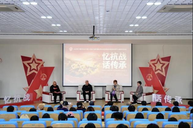 在沉浸式访谈环节,开国少将、抗战英雄黄烽将军的后代们受邀到场,与师生们一同穿越时空,重温那段波澜壮阔的抗战岁月。黄烽将军的女儿杨安翔女士深情讲述,父亲深受三姐黄双惠与老师郑楚云的爱国思想熏陶,在民族危亡之际毅然弃笔从戎,投身抗日救国事业;儿子黄安翼通过几个战斗故事,回忆父亲如何从一介书生,成为“文武双全“的将军;儿媳妇毛莹女士分享了将军晚年潜心编写《汉英常用军语词汇》与回忆录的历程,老将军秉持严谨治学态度,书稿反复与战友、专家研讨核实,最终使回忆录成为抗战研究的重要史料,其赤诚之心与治学精神令在场师生深受触动。