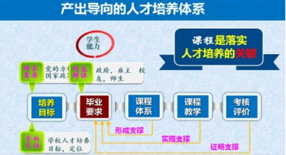 以产出为导向,就是强调以师范生的学习效果为导向,对照师范毕业生核心能力素质要求,评价师范类专业人才培养质量。关注师范毕业生“学到了什么”和“能做什么”,而非仅仅是“教师教了什么”。要求专业按照“反向设计,正向施工”的基本思路,面向基础教育改革发展需求,以培养自标和毕业要求为出发点,设计科学合理的培养方案和课程大纲,采用匹配的教学内容和教学方法,配置足够的软硬件资源,要求每个教师明确自己在课程教学中的主体责任,最终通过课程目标、毕业要求和培养目标的定期评价和持续改进,保证师范毕业生核心能力素质要求的达成。