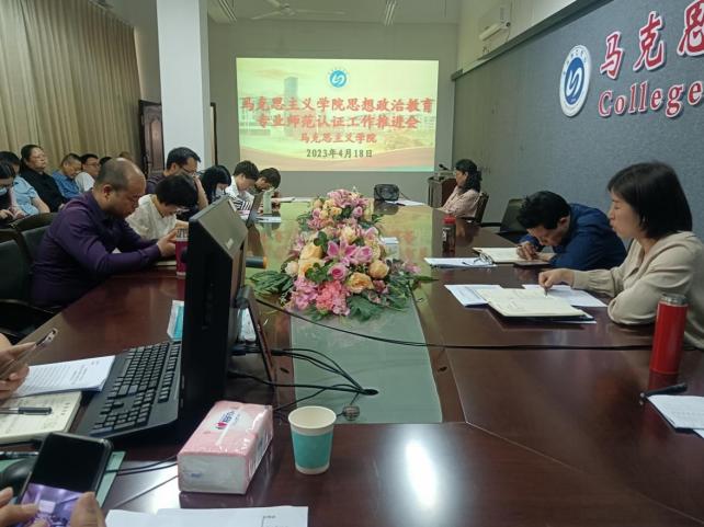 2023年4月18日下午,beats365亚洲版在求知楼D302召开思政专业师范认证工作推进会,会议由黄玉桃副经理主持,全院教师参加。首先,黄玉桃副经理对当前思政专业师范认证的工作进行梳理,要求师范认证八个一级指标的组长要明确职责,针对自评报告专家反馈的问题要逐字逐句进行解读,并积极组织小组成员及时修改,重新校对自评报告,为下一步校外专家评阅做好充分准备;6门专业核心课程的思政课教师要及时完善课程目标达成度分析,丰富过程性评价内容,不断充实课程材料。其次,各组组长及思政专业课教师就目前工作推进中遇到的问题进行积极反馈,共同探讨解决方案。最后,党委书记吴立志强调全院教师要高度重视师范专业认证工作,将其作为当前工作的重中之重,要不断加强师范认证的专业知识学习,以饱满的精神状态积极投入到师范认证工作中,举全院之力,确保认证工作顺利通过。